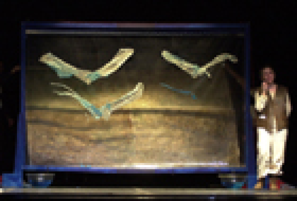 Alianti è un'opera sul volo, sulla necessità dello sguardo dall'alto, sui reticoli delle città da cui viene voglia di alzare gli occhi. Si ascolta una musica che proviene dalla tradizione classica ma viene fecondata dal paesaggio sonoro che ci circonda, con arie che diventano canzoni, suoni delle passate avanguardie che si fondono con un uso divertito del campionatore, virtuosismi strumentali prodigiosi che sconfinano nel jazz. In scena ci sono una cantante dalle molte voci, un'attrice che racconta e sussurra, una pittrice che dipinge sul naylon con la carta velina, un clarinettista che conosce il suono delle frecce, un contrabbassista che poi si copre di piume e un campionatore con una memoria zeppa di suoni.